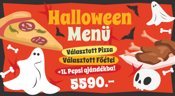 Válaszd a Halloween Menüt és űzzük el együtt a szellemeket! 1 szabadon választott pizza és főétel most 5590 forint 1L ajándék Pepsivel.